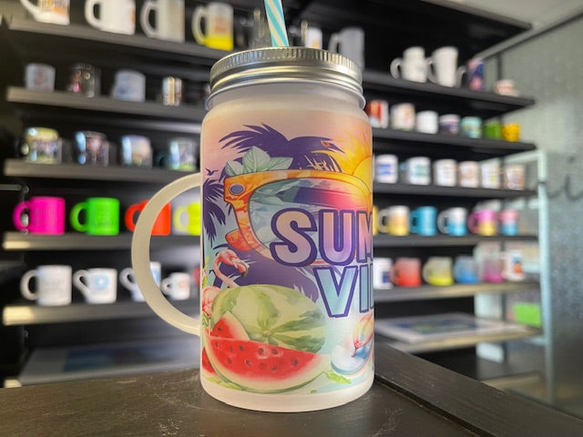 Geniet van je favoriete drankjes in stijl met deze Mason Jar van 500 ml, gemaakt van hoogwaardig frosted glas met een duurzame coating. Dankzij de matte uitstraling oogt deze Mason Jar modern en trendy, terwijl jouw persoonlijke ontwerp – foto, naam, logo of kleurrijk design – haarscherp wordt weergegeven.