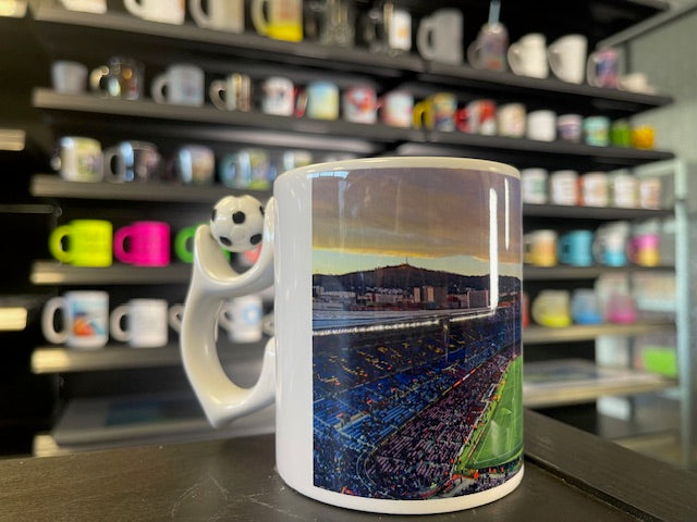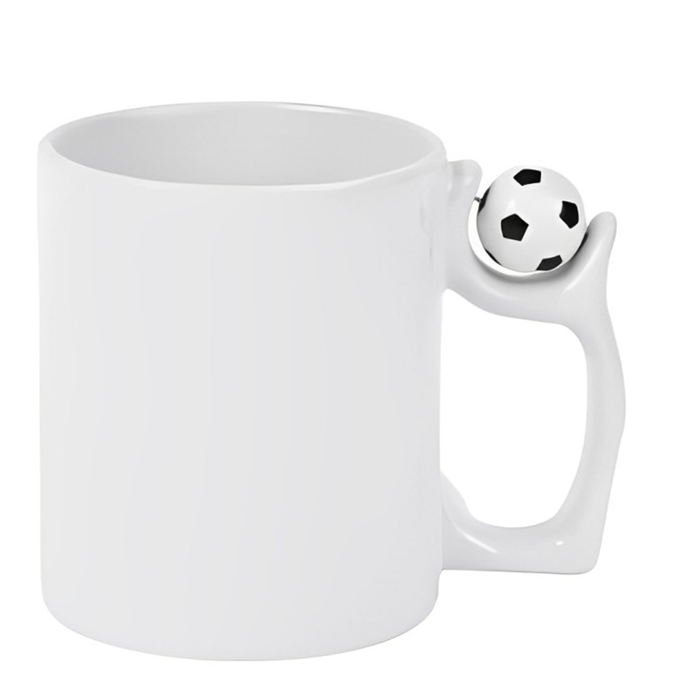 Voor de échte voetbalfan! Deze 330 ml keramische mok heeft een uniek design waarbij het oor is vormgegeven als een voetbal. Perfect om te personaliseren met een naam, foto, logo of favoriete clubkleuren. Dankzij de gladde coating komt elke print haarscherp en levendig tot leven.